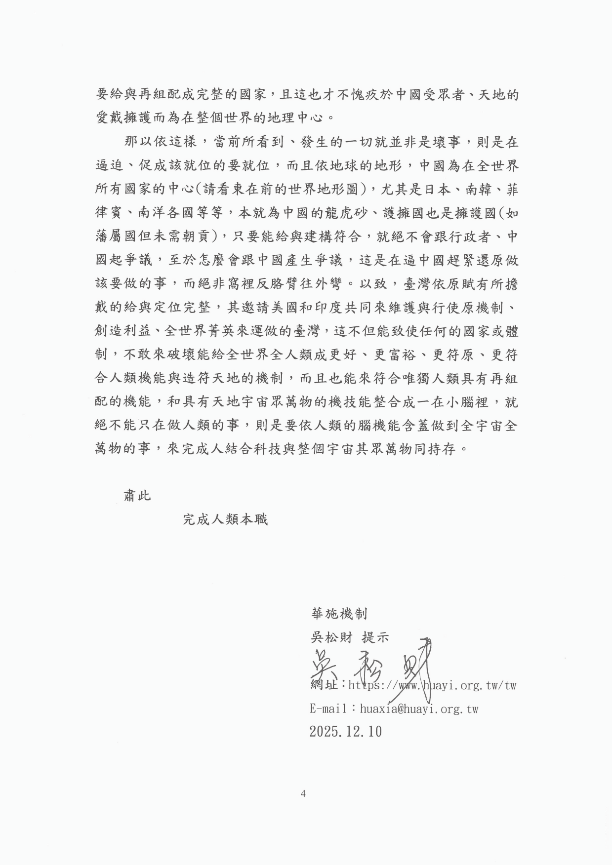 2025.12誠心呈上給國家主席習近平先生的國是方策建言【華施機制】